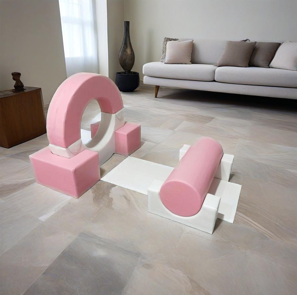 A premium, modular soft play collection featuring cushioned ball pits with entry steps and multi-level foam climbers, designed for safe, sensory-rich indoor active play.