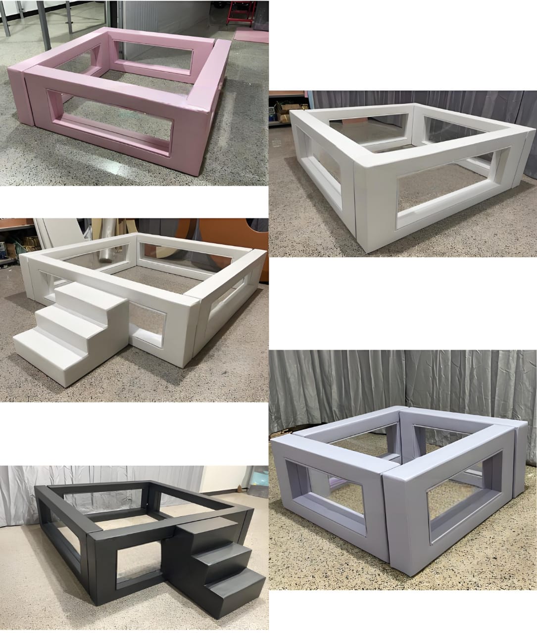 ​Modular Ball Pit Options: Choose from 8-sided hexagonal pits or traditional square designs available in various heights to suit different age groups.