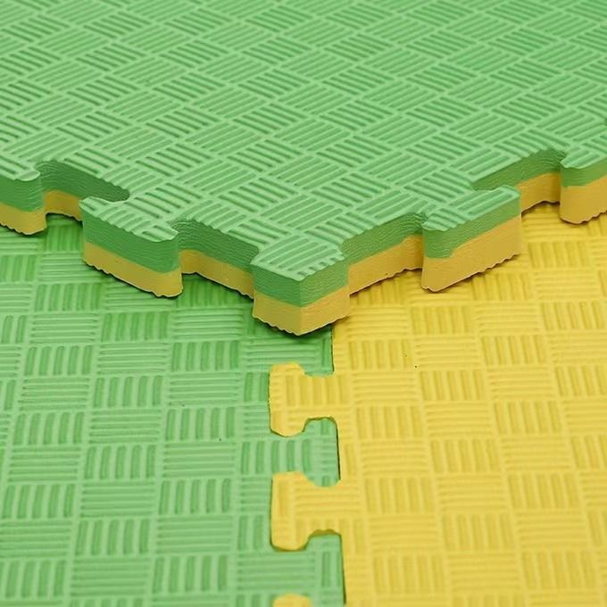 ​Dual-Layer Reversible Design: Each tile features a two-tone construction with green and yellow sides, offering versatility in styling your play area.